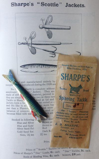 “Mr J.S. Sharpe, who celebrated his 85th birthday in January, served his apprenticeship as a gunsmith with Davidson, Gun maker in Carmelite Street, Aberdeen [thought to be between 1889 and 1895]. As a boy he fished the Don and has wielded a fishing rod with no mean skill and ability ever since. As a young man he left Aberdeen to work in a North of England fishing tackle business [Hardy Brothers, Alwnick]. When the Great War broke out he joined the Army in September, 1914, and saw service in the Dardanelles, Egypt, Palestine and France. Returning home somewhat unsettled after his wanderings and adventures abroad, he decided to return to Aberdeen to open up business on his own account. This he did in 1920, brining his two sons, Jack and Alan, with him. At that time every country in the world was open, but, of course, subject to import tariffs in many cases. Competition was severe, and the Sharpes with the small capital available, had a long uphill climb before them. They applied the inventiveness and patience they had acquired when angling to their business. They made fishing rods, invented collapsible landing nets and telescopic gaffs of unique design. They battled their way through the disastrous slump of 1927 and succeeded in selling their products to shops in Canada, New Zealand, India and France, as well as many fishing rods to local anglers. A number of these rods are still in use today. In 1933 they exhibited in the Milan Exhibition and were awarded the Gold Medal by an International jury. By 1938 their products were known to every fishing tackle shop at home and in most countries abroad. They had succeeded in building the biggest fishing rod manufacturing business in Scotland.